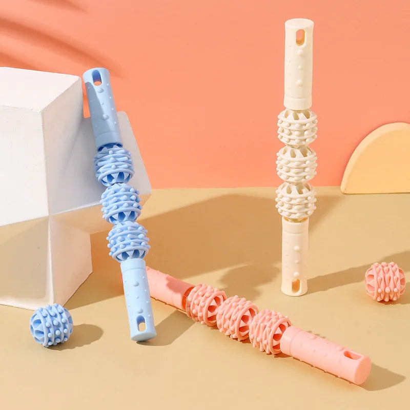 4 boules bâton de Massage rouleau mollet Muscle Cervical cou épaule dos relaxant Yoga loup dents Muscles Relaxation Fitness